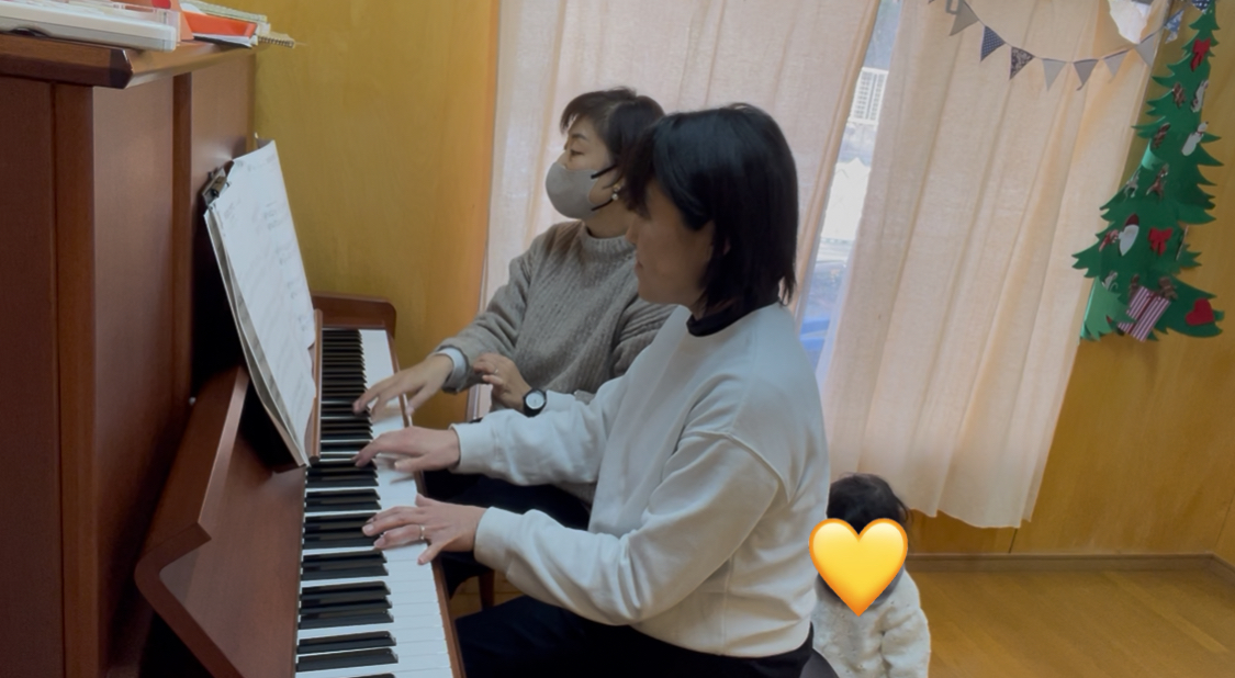 今日の鑑賞曲はクリスマスメドレー🎵ピアノの方へ近づいてリズムに乗ってくれるKちゃん🩷かわいい〜💕