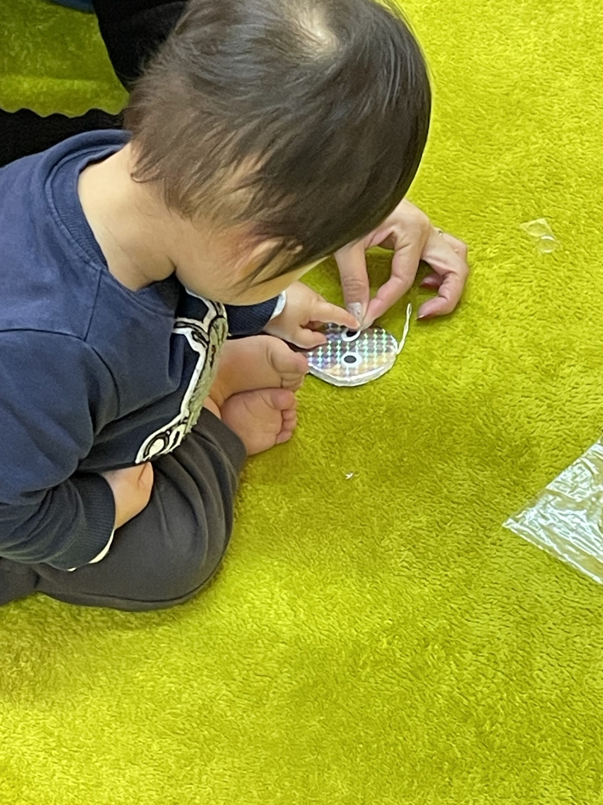 コントラストの強い絵やキラキラ光るものは赤ちゃんの興味を惹きつけ、脳の発達に良い影響を与える可能性があるそうです✨✨お家で飾ってキラキラ楽しんでね!
