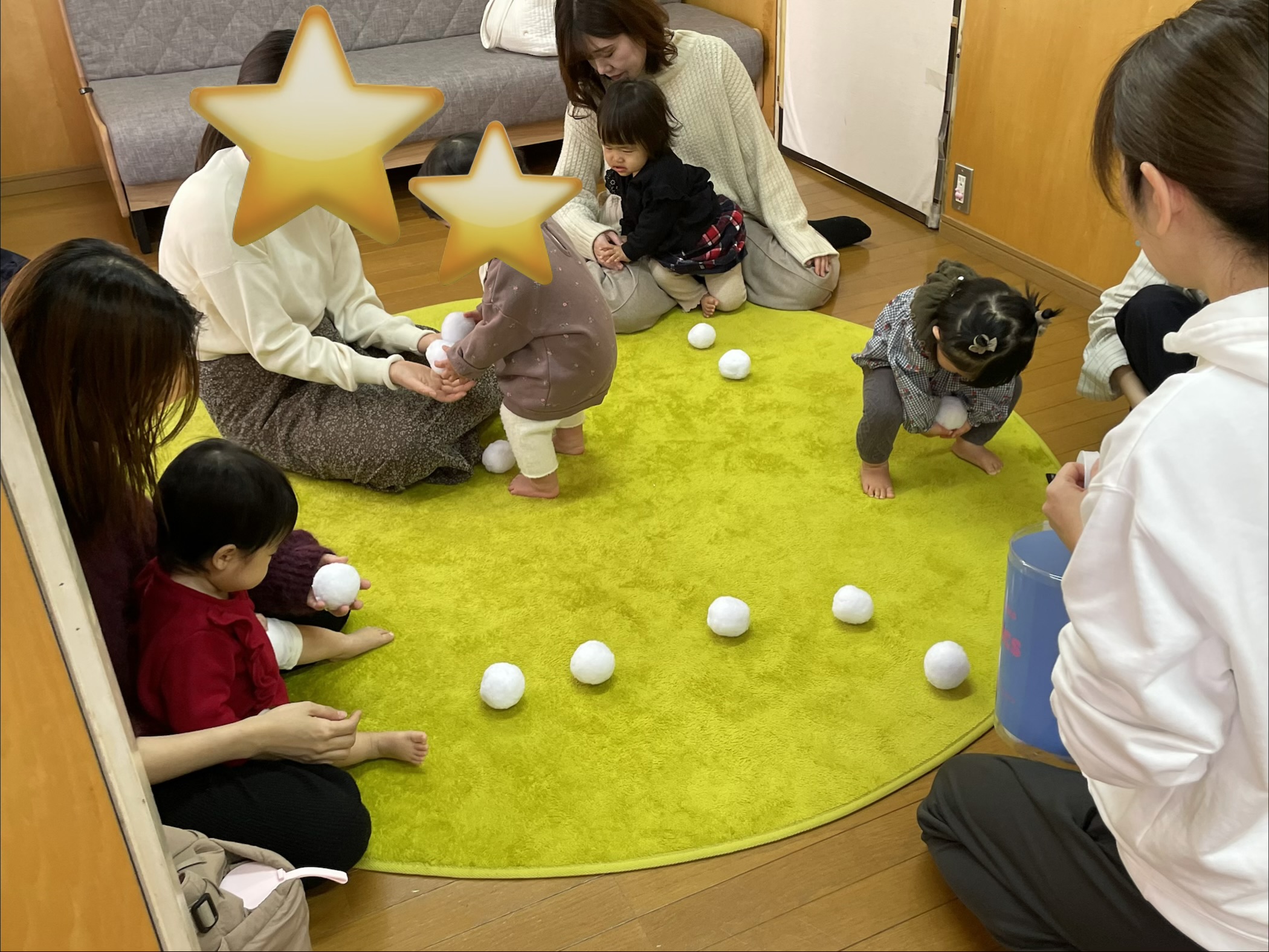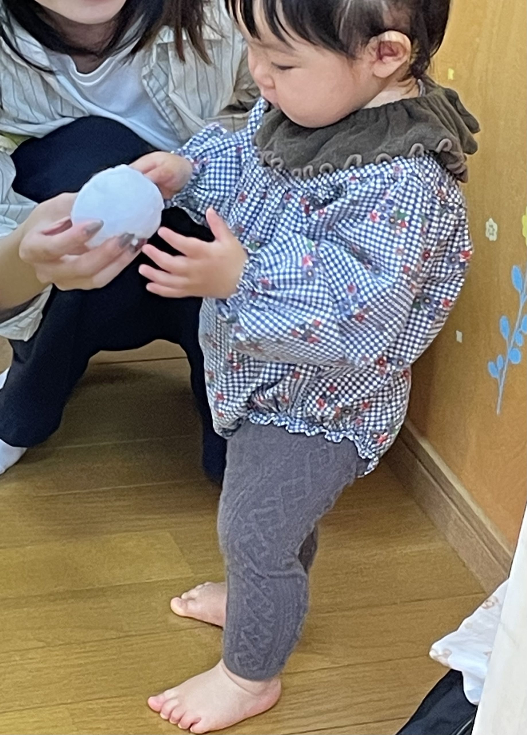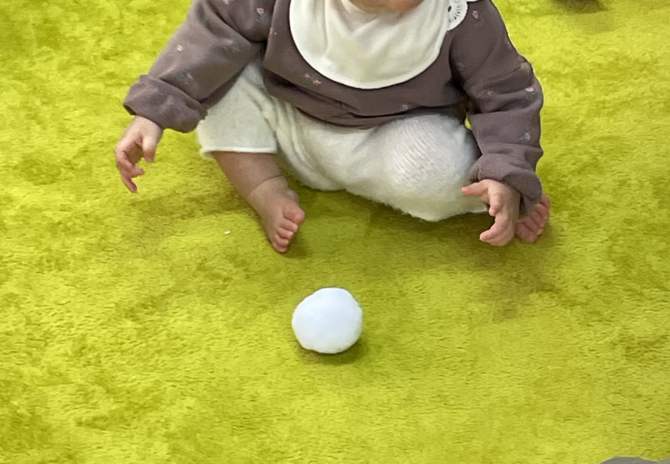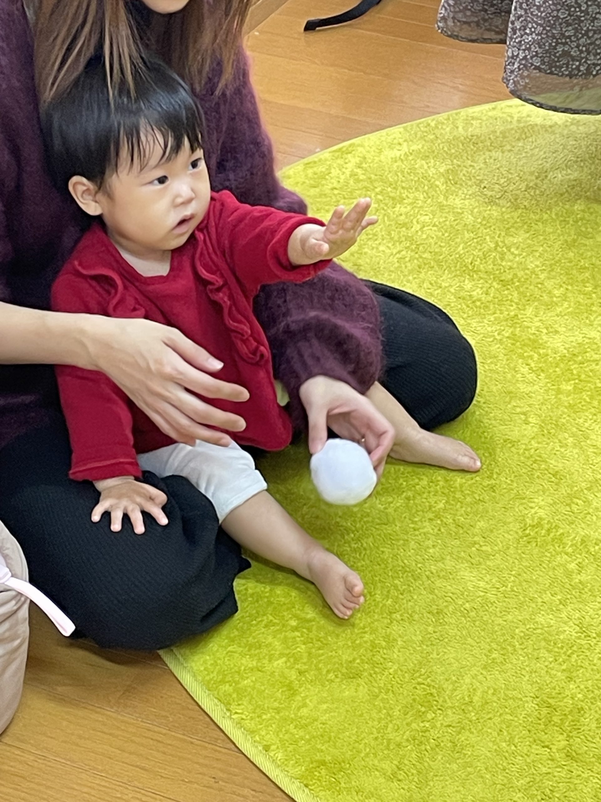 大きなシフォンに雪玉を乗せて♪雪やこんこのお歌に合わせてシフォンをフワフワ⤴️⤵️