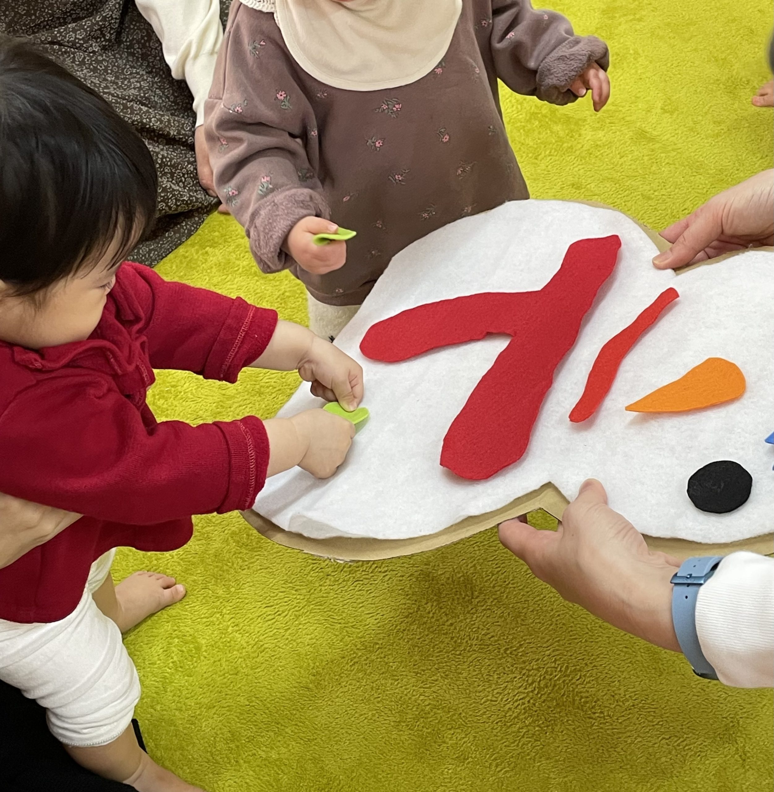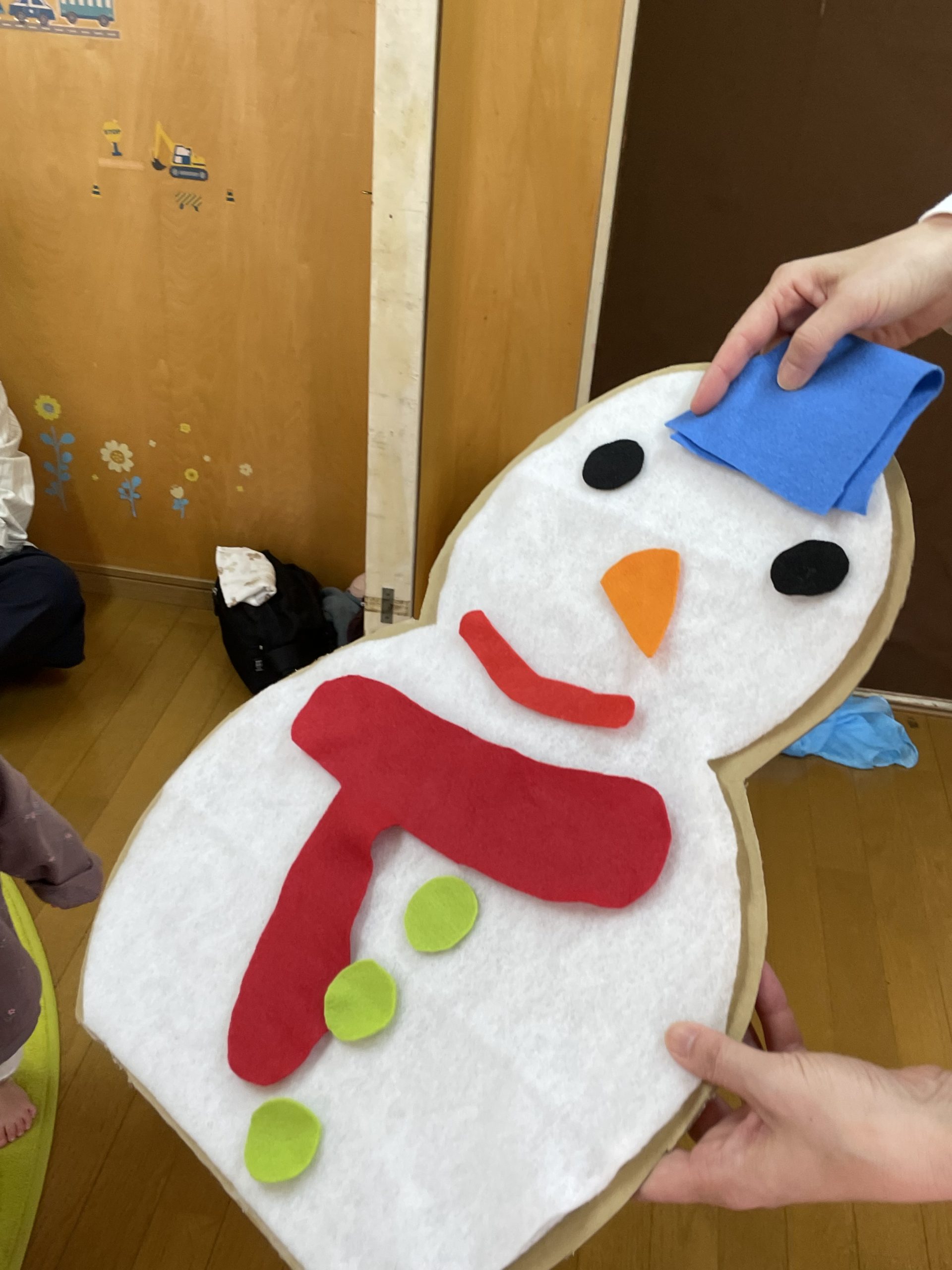 雪だるまさんに目👀鼻、帽子、マフラー🧣を付けてあげよう⛄️