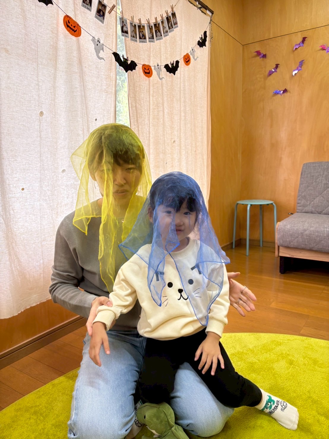 ハロウィンが近づいてきたので、音楽リトミックでもちょっぴりハロウィンの要素を入れて、おばけと遊ぶをテーマに活動しました👻