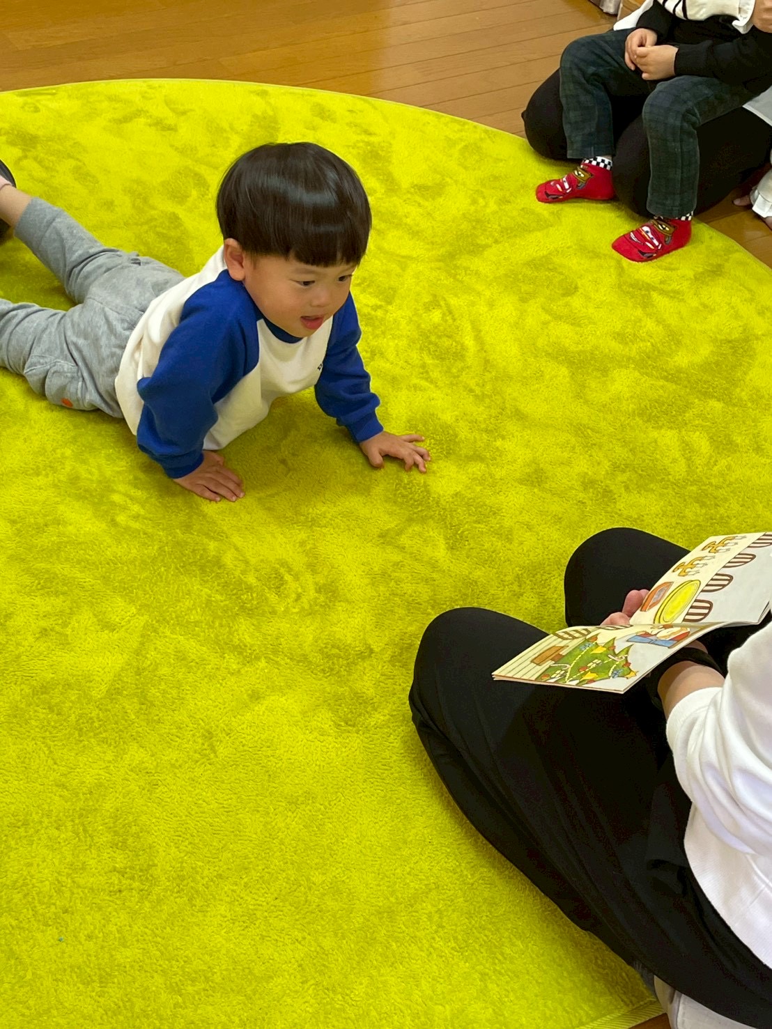 うさぎクラスのみんなはちょっとこわい…からくまちゃんを乗せてあげよう!