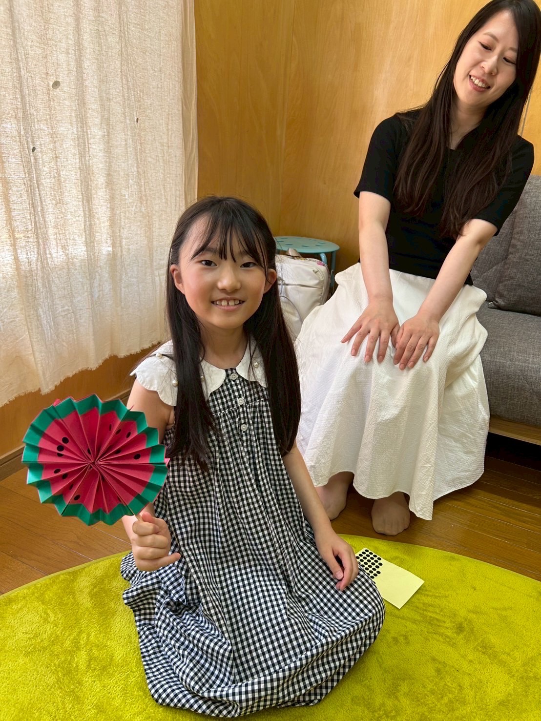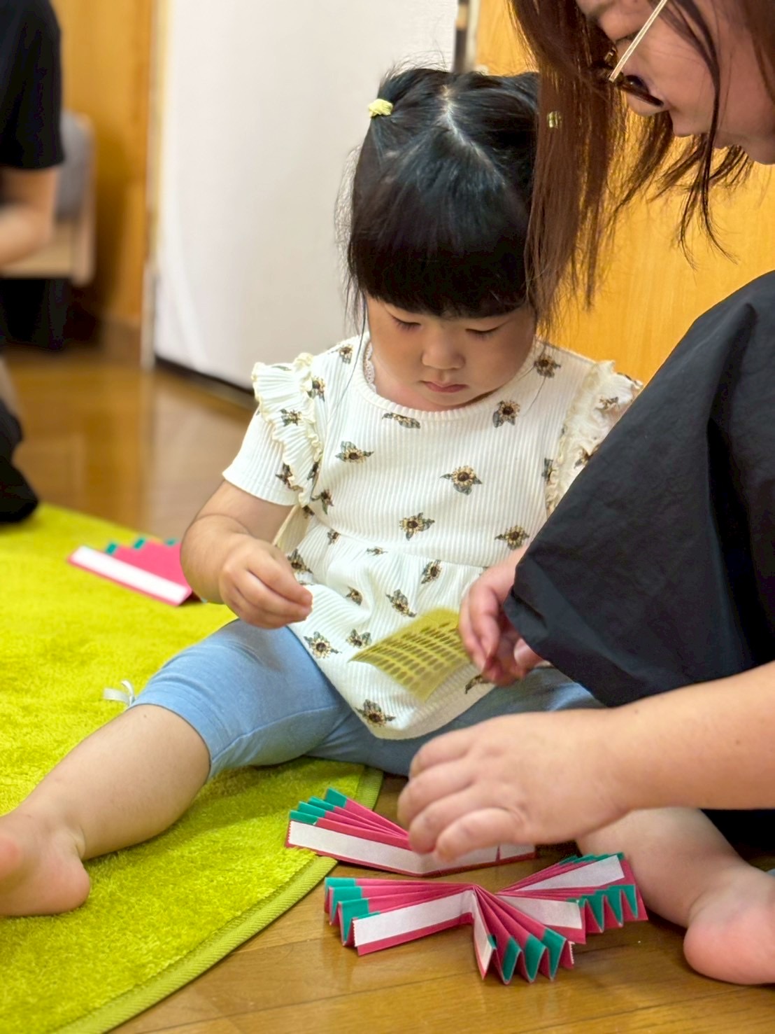 コンパクトに畳めるスイカうちわの出来上がり✨✨