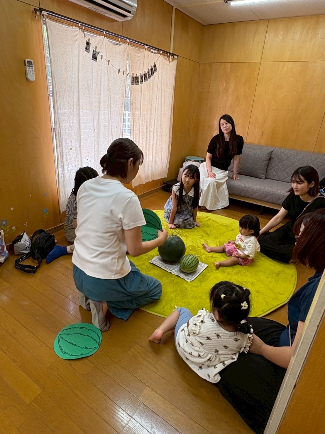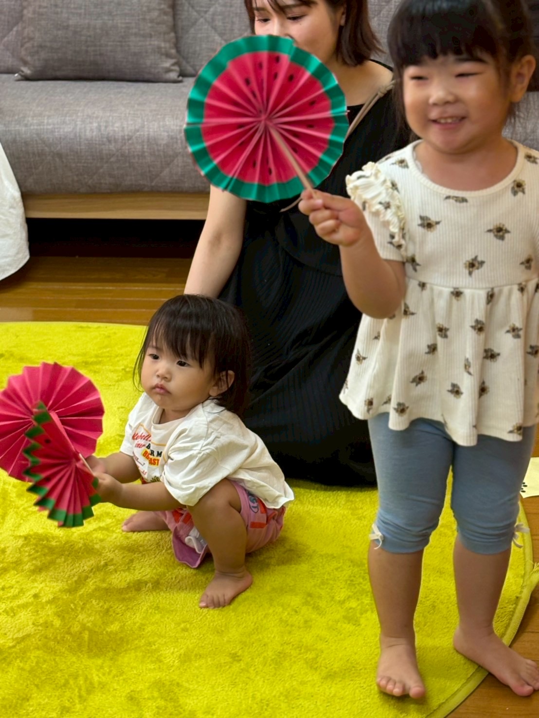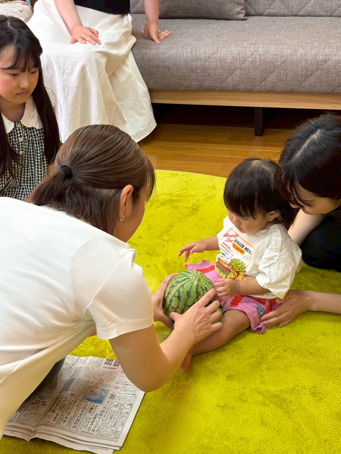 大きなたいこのお歌を、大きなスイカは大たいこで、小さなスイカは小さなたいこを叩きました🎵