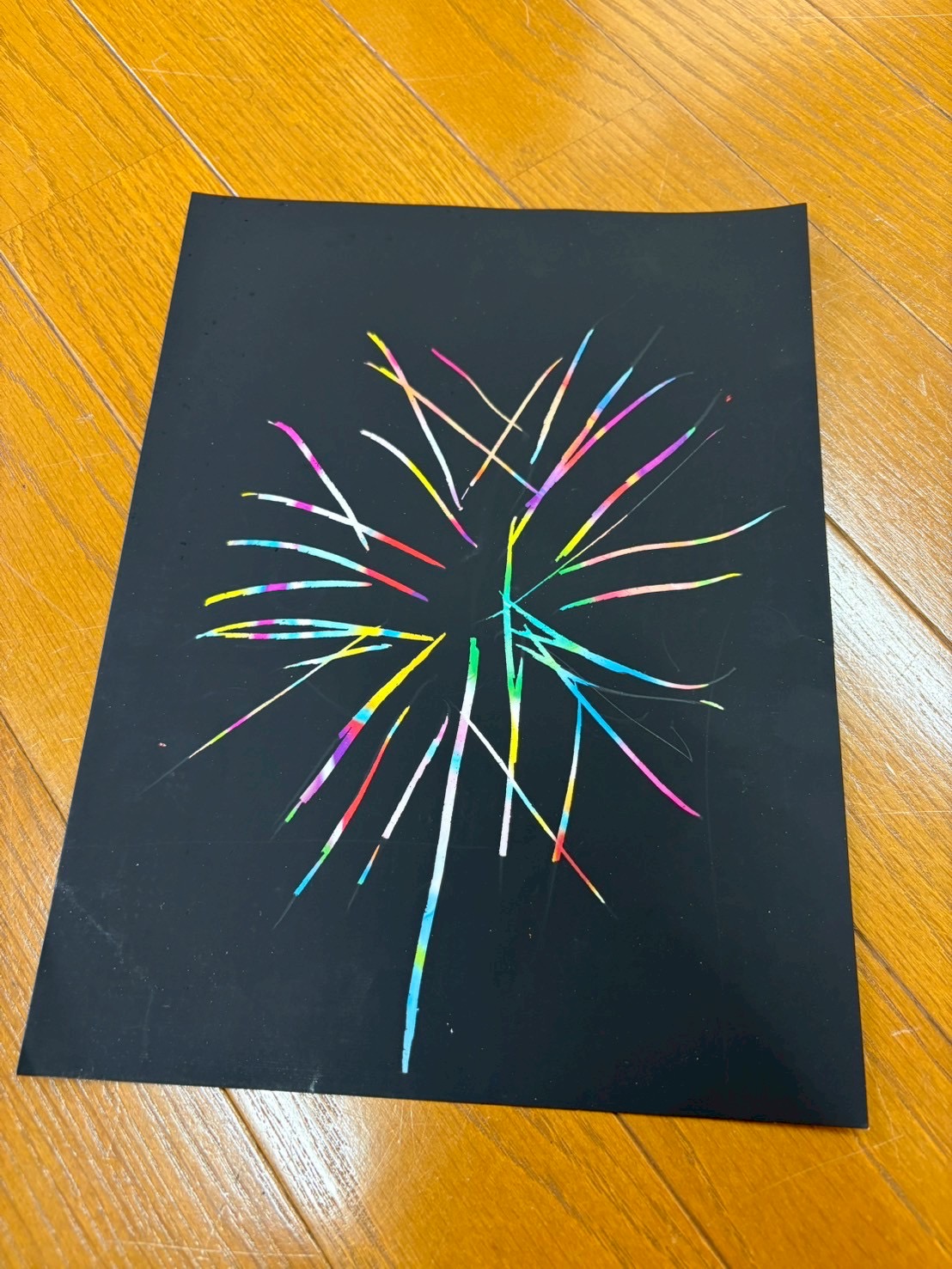 どーん!とイメージを膨らませながら スクラッチで花火のクラフト。