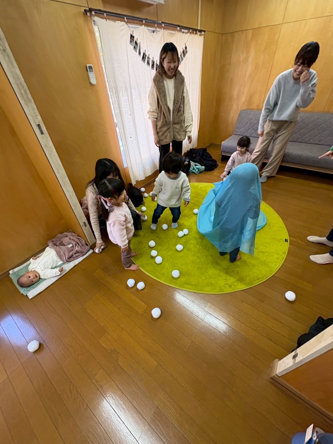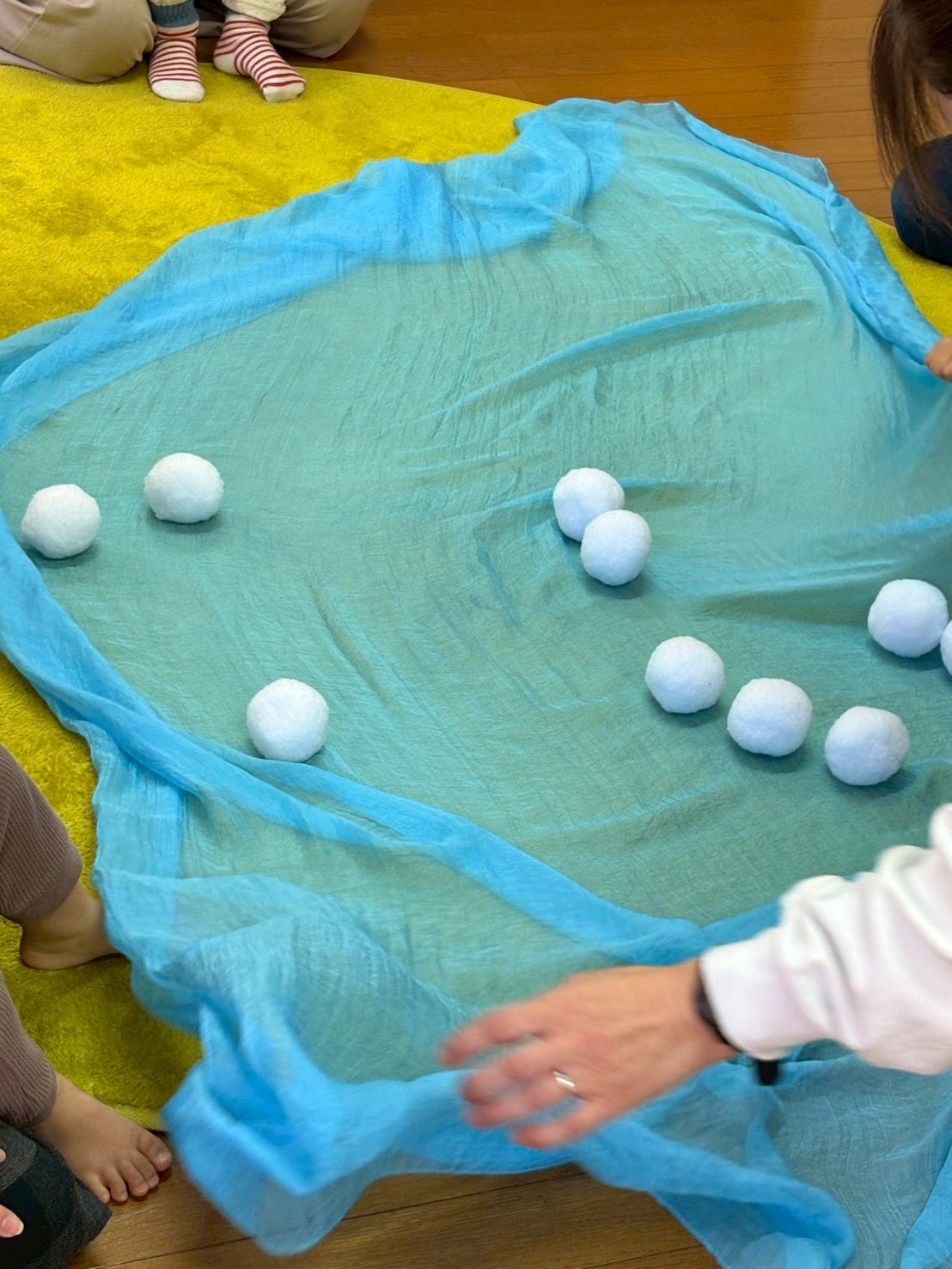 リトミックのお部屋の雪は柔らかくて冷たくない☺️
