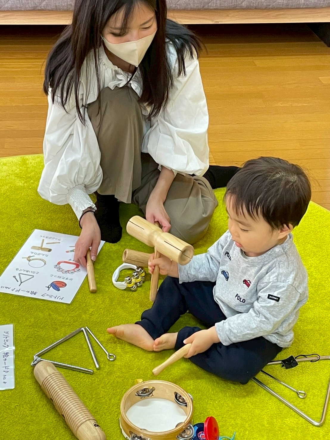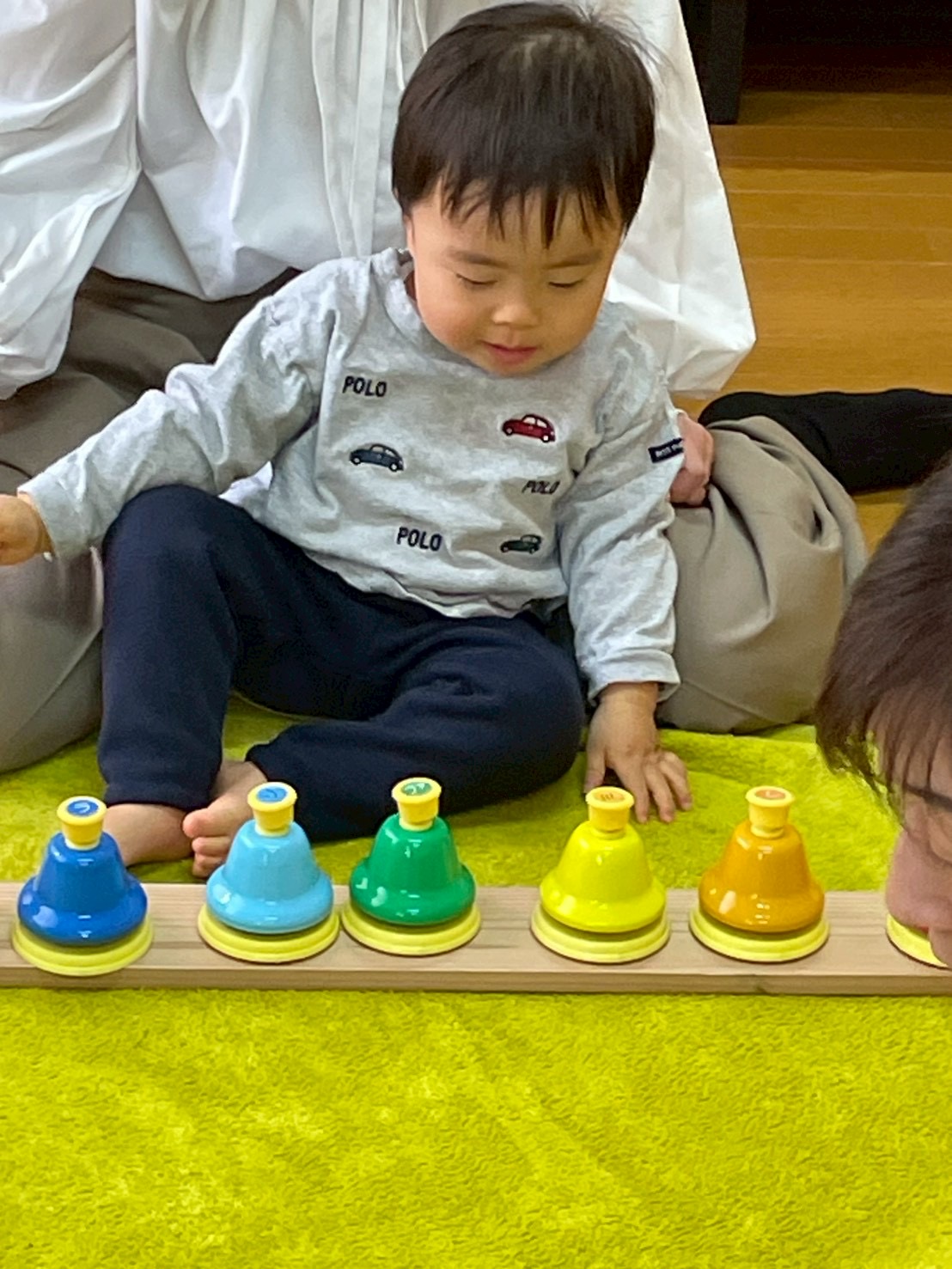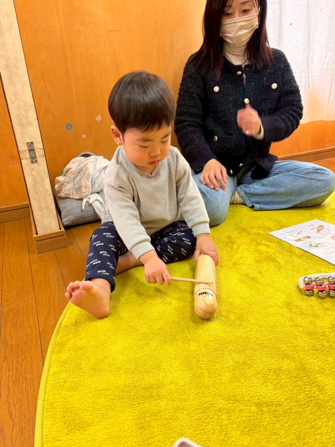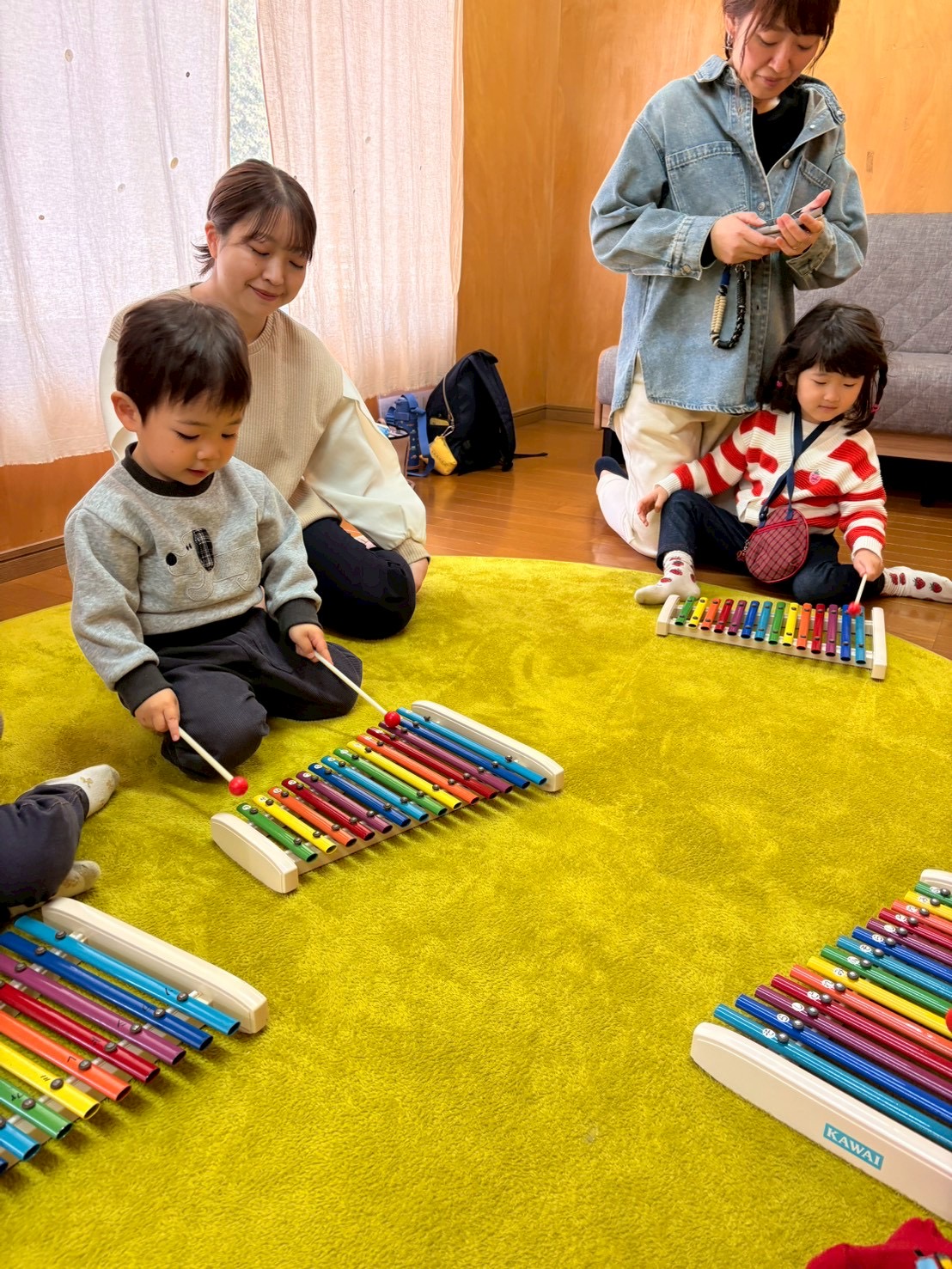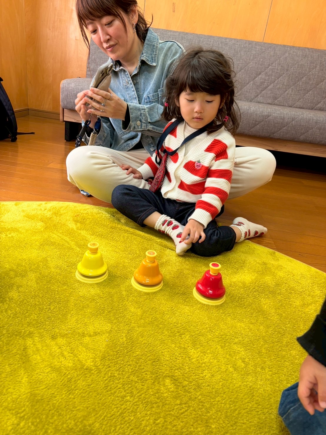 ドレミのハンドサインのお歌に合わせてこじかクラスは鉄琴を、うさぎクラスはベルを演奏してもらいます🎶
