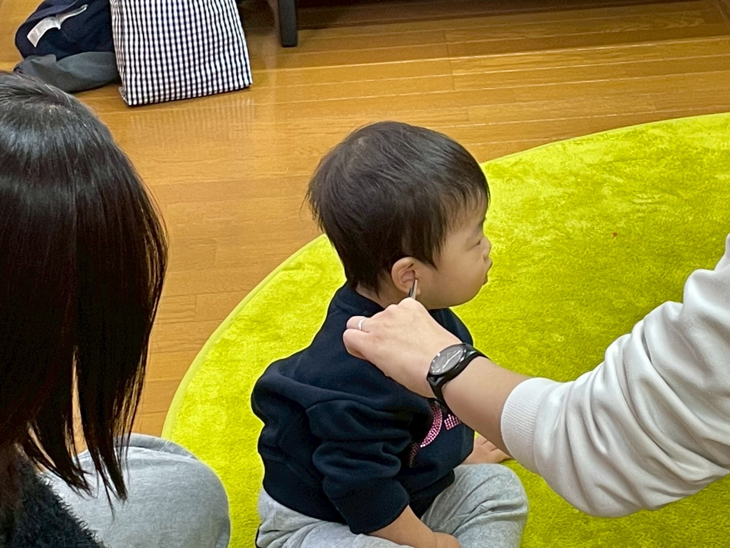 うさぎクラスは音叉を聴いて「ラー」の音の確認!